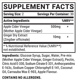 Leava relies on a balanced formula in the form of fruit gummies: glucose syrup, sugar, water, a premix of apple cider vinegar (‘mother’) and ginger extract, pectin (as a gelling agent), citric acid (E330) and sodium citrate (E331) for acidity regulation, natural colourings such as anthocyanidins (E163c) and sodium copper chlorophyllin (E141), as well as coconut oil, carnauba wax (E903) and apple flavouring. The combination is designed for taste, tolerability and everyday use.